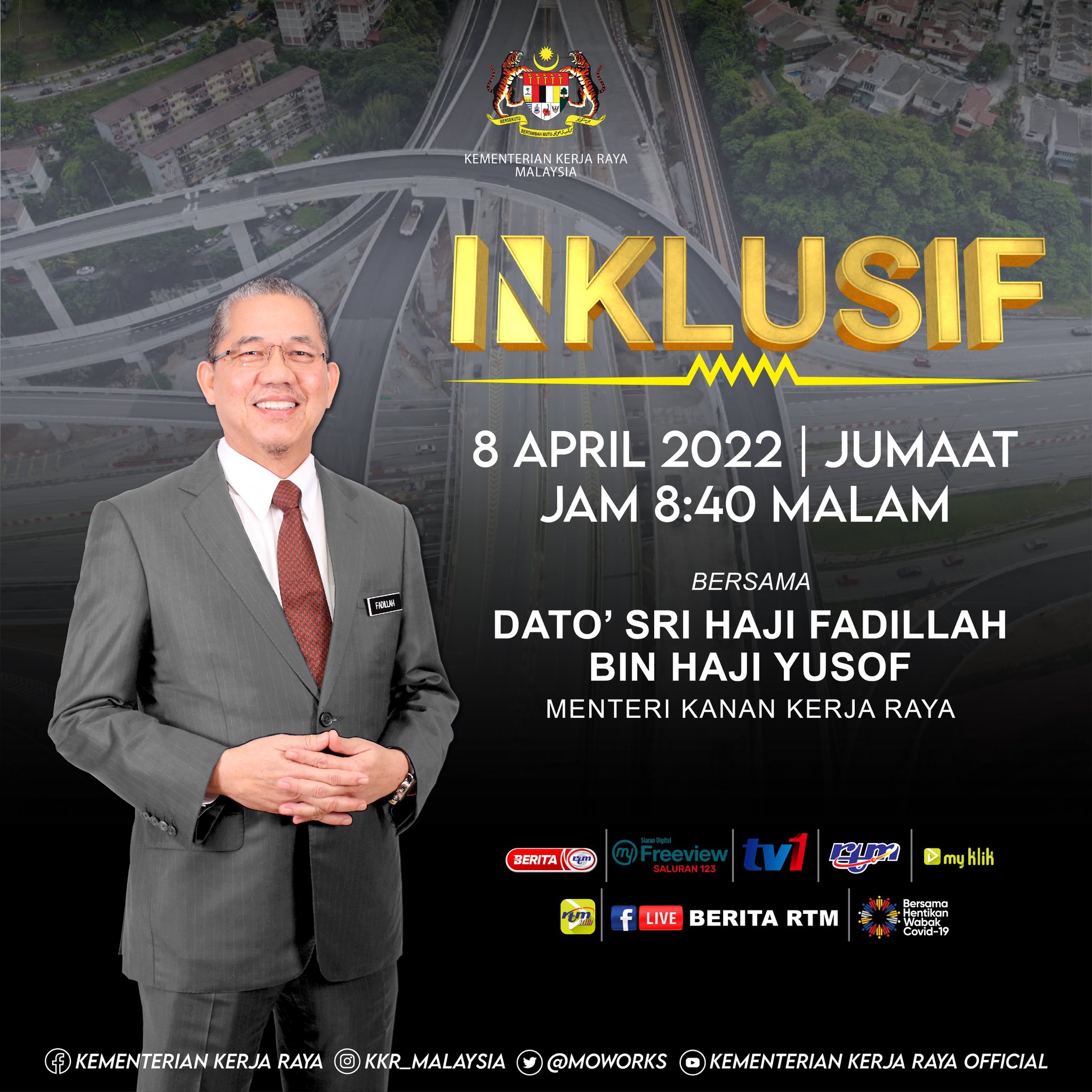 Kkr Malaysia On Twitter Jangan Lupa Saksikan Inklusif Malam Ini Bersama Dato Sri Haji Fadillah Bin Haji Yusof Menteri Kanan Kerja Raya Pada Jam 8 40 Malam Di Tv1 Https T Co Zijagttnlf Twitter
